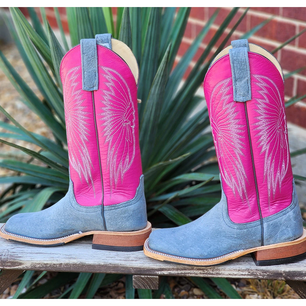 These beautiful grey & Pink Anderson Bean boots are so eye catching. Just look at the fabulous Indian Chief detail in the boot shaft, that is so original. These boots can take you from the office to the arena.Â