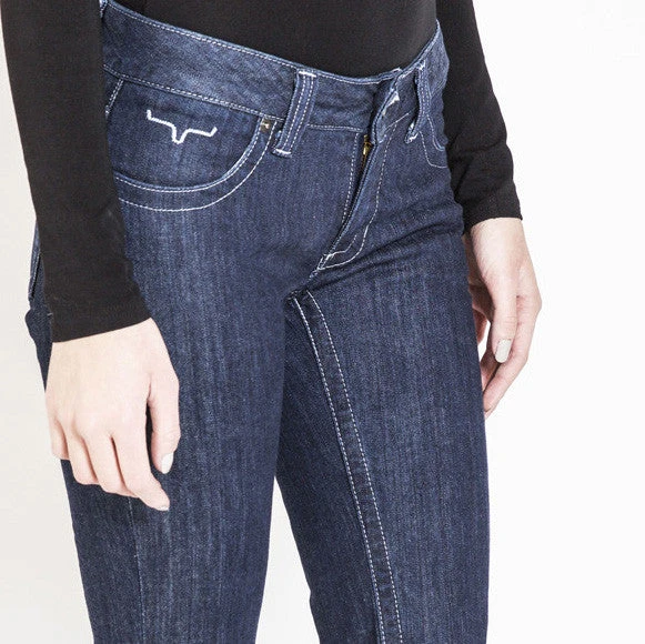 The Jolene jean from Kimes Ranch is the most figure flattering low-rise jean, it sits perfectly on the hips. This jean has a wide boot cut with silver stitching, the Jolene will soon become your favorite pair of new jeans.Â
