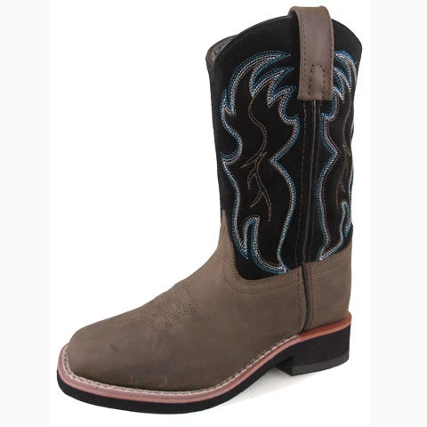 This child’s boot from Smoky Mountain features a brown leather toe and a black shaft with blue western stitching! The pull tabs on the top make it easy for kid’s to get their boots on!Â