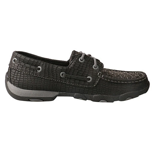 Spice up your country wardrobe with these black fish Twisted X! Their rubber out sole and moisture wicking washable insole makes these super comfy! Get yours for your next evening out, now!